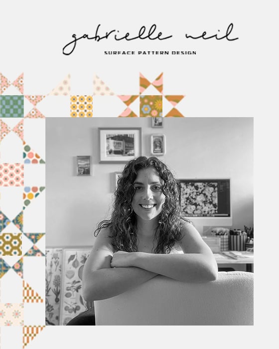 Gabrielle Neil is an Australian print designer known for her maximalist, story-rich textile work. Her signature style — juxtaposing patterns, saturated color palettes and soft, layered textures — draws inspiration from florals, quilting and vintage fabric traditions. Designs that feel nostalgic and completely new at the same time.